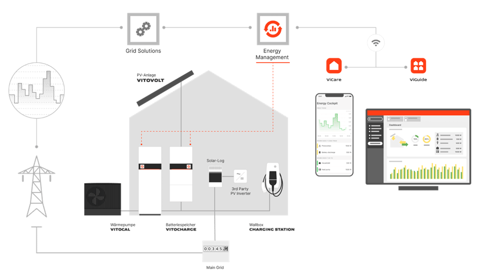 Integración y visualización de sistemas: La plataforma unifica eficientemente las bombas de calor Vitocal, la ventilación Vitoair y los sistemas fotovoltaicos. A través de la app ViCare donde el usuario visualiza en tiempo real todos los flujos energéticos, desde la generación hasta el consumo final.