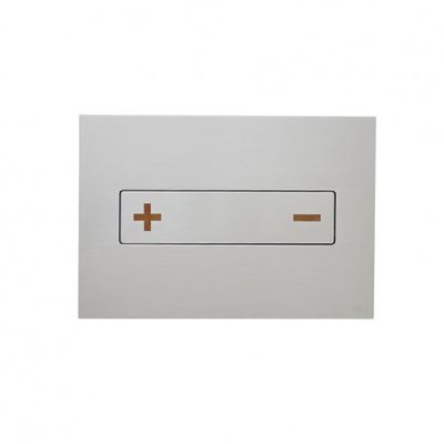 Pulsador para cisterna OLI modelo OCEANIA acabado acero inox brillo. Accionamiento neumático. Doble descarga.