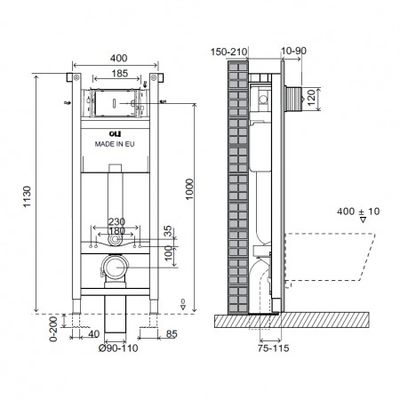 Cisterna con bastidor OLI EXPERT EVO Sanitarblock 1130. Para pulsador Mecánico. Para inodoros suspendidos en tabiquería ligera.