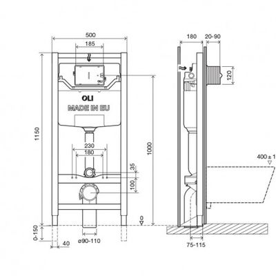 Cisterna con bastidor OLI120 PLUS Sanitarblock Autoportante. Para pulsador Mecánico. Para inodoros suspendidos en tabiquería ligera.