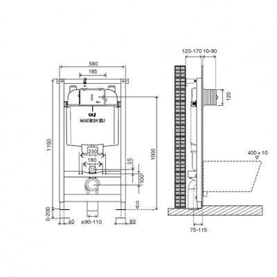 Cisterna con bastidor OLI74 PLUS Sanitarblock. Para pulsador NO TOUCH. Para inodoros suspendidos en tabiquería ligera.