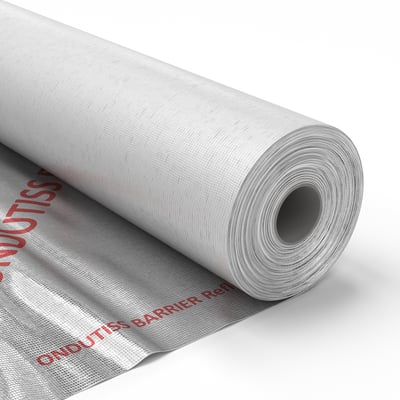 ONDUTIS BARRIER REFLEX es una membrana barrera de vapor PE (polietileno) reforzada con una lámina de aluminio. Destinado para la protección de todo tipo de cubiertas y fachada contra el vapor proveniente del interior del edificio, de la humedad exterior y del viento. Proporciona una protección fiable que reflecta el calor y previene el desarrollo de hongos y moho. Dim. rollo: 50 x 1,5m - Gramaje: 130gr - Nº capas: 3