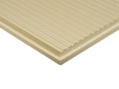 Panel de poliestireno extruido, URSA XPS N-III PR L de URSA. 60x600x1250 mm. De superficie acanalada y canto a media madera. En panel.
