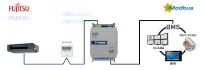 Gateway para integración de unidades interiores de aire acondicionado Fujitsu a Modbus RTU
