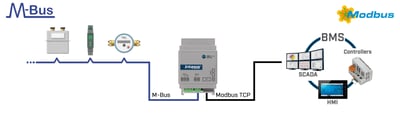 Configurable para integrar contadores M-Bus en Modbus TCP o contadores M-Bus en BACnet/IP.