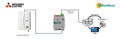 Gateway para aire-agua Mitsubishi Ecodan a Modbus RTU o BACnet MS/TP
