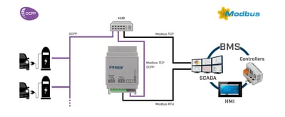 Pasarela Intesis OCPP a Modbus (capacidad: 20 cargadores de vehículos eléctricos) - Ref. INMBSOCP0200100