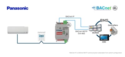 Permite el monitoreo y control de unidades interiores Panasonic desde sistemas de control BACnet MS/TP o BACnet/IP.