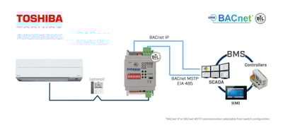 Gateway para integración de unidades interiores de aire acondicionado Toshiba a BACnet MS/TP o BACnet/IP