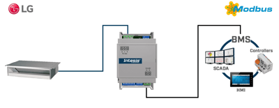 Pasarela Intesis VRF LG a Modbus RTU - Ref. INMBSLGE001R000