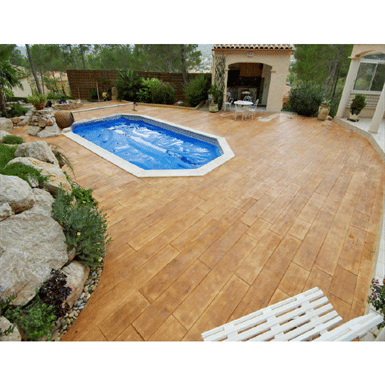 Pavimento continuo de hormigón impreso de 12 cm de espesor con juntas, realizado con hormigón HM-20/B/20/XC0 Artevia Impreso de Holcim, acabado impreso en relieve a definir por la D.F. Tratado superficialmente con mortero endurecedor Artevia Impreso de Holcim compuesto por cemento de alta resistencia, áridos seleccionados, pigmentos, aditivos y resinas sintéticas de alta resistencia a la abrasión, espolvoreado superficialmente sobre el hormigón fresco, color a elegir (rendimiento de 4 kg/m2); desmoldeante en polvo Artevia impreso de Holcim y capa de sellado final con resina selladora Artevia de Holcim, incolora, extendido y vibrado manual. Para superficies mayores a 200 m2