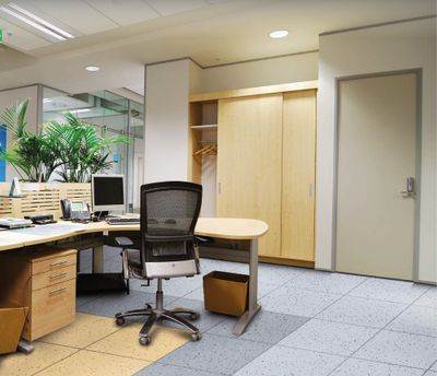 Pavimento elevado y registrable, sistema Gamaflor Bank 35/05/05 HEAVY de Polygroup. Acabado PVC Conductile Super-OR Reforzado. Sistema conductivo. 125,08 € / m2(1,050 m2 x 125,08 €/m2 = 131,33 €)