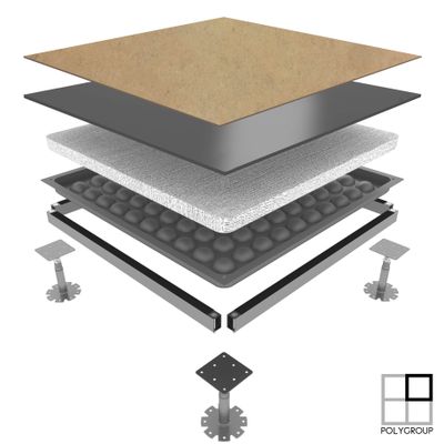 Pavimento elevado y registrable, Gamaflor Full Steel Heavy Medium de Polygroup. Encapsulado de acero ignifugo. 96,88 € / m2(1,050 m2 x 96,88 €/m2 = 101,72 €)