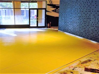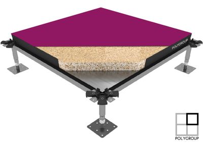 Pavimento elevado y registrable, sistema Gamaflor PAC 35/05 de Polygroup. Acabado PVC Unicolor Sovereign Tech. Color liso. 100,88 € / m2(1,050 m2 x 100,88 €/m2 = 105,92 €)