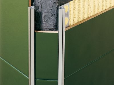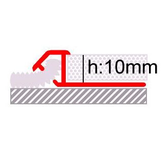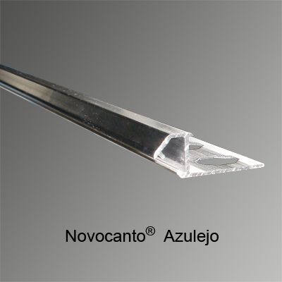 Perfil cantonera angular Novocanto®, fabricado en aluminio Azulejo aluminio anodizado bronce mate 14 de 10mmx2500mm, que sirve de guía para una pieza del propio revestimiento, formando un chaflán con ésta. Permite chaflanes de cualquier medida variando simplemente la medida del revestimiento utilizado entre los perfiles.