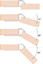 Permite su instalación en esquinas de ángulos comprendidos entre 0º y 45º.