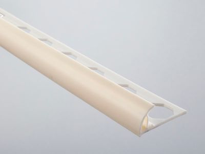 Perfil cantonera redondeado Novocanto® fabricado en PVC PVC gris nº 02 de 8x2500mm, que se emplea como cantonera para proteger y decorar esquinas de paredes revestidas con baldosas cerámicas. Se coloca fácilmente en el ángulo formado por el revestimiento.