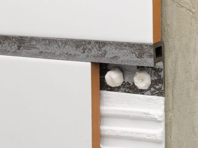 Perfil Listelo cuadrado Novolistel® Fusión, fabricado en Fibras+PVC maxipizarra-plata nº 114 de 12mmx2500mm, totalmente versátil, apto para su colocación como listel, separador de pavimentos, cantonera, peldaño, etc.