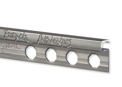Perfil Listelo Novolistel® Original Colección Francis Montesinos, fabricado en aluminio anod. espejo nº 110 de 12mmx2500mm, elegante y distinguido. Un perfil casi escultórico, con la firma del diseñador Francis Montesinos en bajorrelieve. Para uso tanto vertical como horizontal.