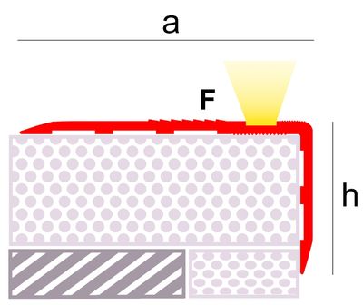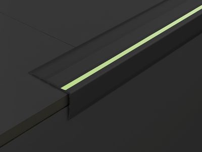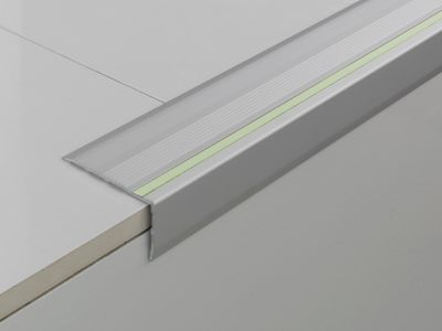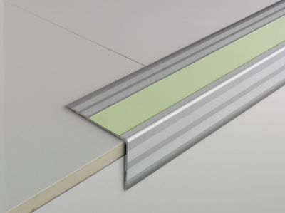 Perfil para remate de peldaños en aluminio a:48 h:25 Long:2, 5 con banda fotoluminiscente de 5 mm.