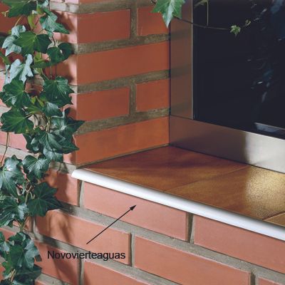 Perfil redondeado para el remate de alféizares de ventanas alicatadas, con cerámica u otro tipo de material, con goterón en la parte inferior Novovierteaguas de Emac®. Fabricado en aluminio color azul fuerte Nº 06. Perfiles de 2,50 m. de longitud con ala de fijación troquelada mediante perforaciones en forma de octógono de 80 mm. y destinado a complementar baldosas u otro tipo de revestimientos con un espesor total de 12 mm, colocado según se indica en la ficha técnica del fabricante y con posibilidad de complementar con las tapas finales y piezas de ángulo para evitar ingletes.
