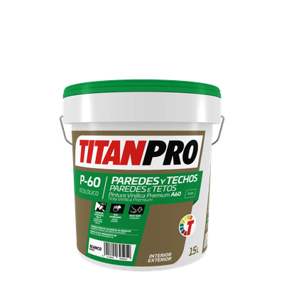 Pintura vinílica de acabado mate, referencia P-60 de Titanpro. Envase: 15 l. Alta calidad y resistencia