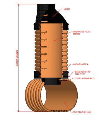 Pozo SANECOR® DN1200 con base de registro / colector DN1200 (con pates) H=2,5 m