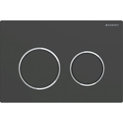 Pulsador Omega20 de Geberit. Doble descarga: negro mate lacado, cromado brillante