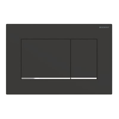Pulsador serie Sigma30 de Geberit. Doble descarga: negro mate lacado, revestimiento fácil de limpiar