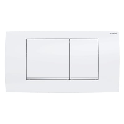 Pulsador serie Twinline30 de Geberit. Blanco/ cromado brillante