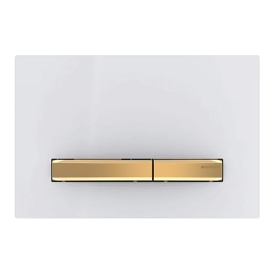 Pulsador Sigma50 de Geberit, color metálico latón: latón, blanco