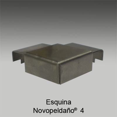 Perfil para remate de peldaños Novopeldaño® 4 acero Inoxidable de Emac®. Fabricado en acero Inoxidable AISI 304 color natural Nº 111. Perfiles de 1 m. de longitud con superficie doblemente mecanizada, ala de fijación troquelada mediante perforaciones en forma de octógono, de caravista a: 25 mm. y destinado a complementar baldosas u otro tipo de pavimentos con un espesor total de 11 mm, colocado según se indica en la ficha técnica del fabricante y con posibilidad de complementar con piezas para esquinas y evitar tener que hacer inglete.
