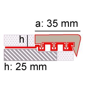 Remate de aluminio y pvc para peldaños h:25mm a:35mm long:2, 5m