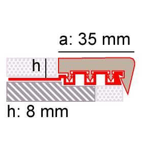 Remate de aluminio y pvc para peldaños h:8mm a:35mm long:2, 5m