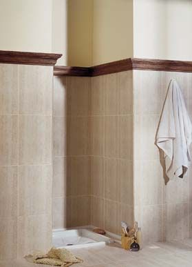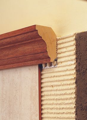 Remate de zócalos y alicatados a media altura Novocapitel de Emac®. Fabricado en madera natural de ayús. Perfiles de 2,50 m. de longitud protegido con film protector, con ala de fijación de aluminio troquelada mediante perforaciones en forma de octógono, cara vista de 90 mm. y destinado a complementar baldosas u otro tipo de revestimientos con un espesor total de 10 mm, colocado según se indica en la ficha técnica del fabricante.