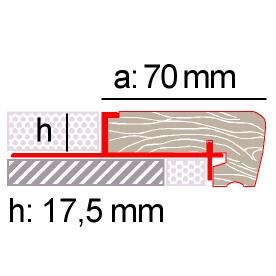 Remate para peldaños de madera de iroko h:17, 5mm a:70mm long:2, 5m