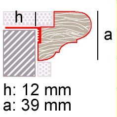 Remate para peldaños de madera de tali h:12mm a:39mm long:1, 5m