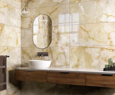 Onice es una colección de gres porcelánico efecto mármol disponible en ámbar, verde y salmón. Sus diseños infunden a los espacios habitables descanso, calidez y comodidad.
