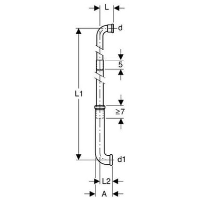 Set de codos de descarga 90° Geberit extensible, con envolventes protectores y tapones de protección: d=32mm, A=9.5cm, Negro
