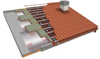 SIATE de cubierta Onduline para teja curva (Ondutiss Barrier Reflex 130 + Ondutherm Basic H19+A80 + Onduline DRS BT-150 PLUS)