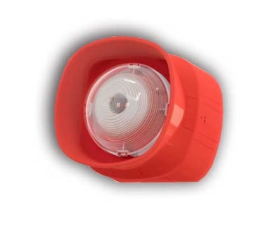 Sirena acústica con foco de bajo consumo para uso exterior certificada EN54-3 y EN 54-23. Grado de protección IP66. La sirena puede configurarse como elemento óptico-acústico o solo óptico. Dimensiones Ancho 110 mm, Alto 100 mm. Intensidad sonora 99±3 dB(A). Clase W0.
