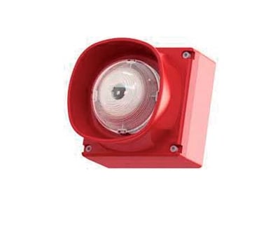 Sirena acústica con foco de bajo consumo para uso exterior certificada EN 54-3 y EN 54-23.