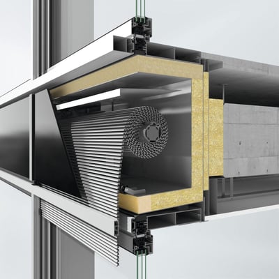 Sistema de protección solar CTB en sistema de fachadas Schüco FWS 50/60
