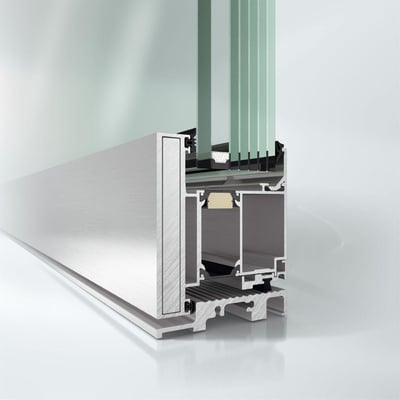 La profundidad de construcción de 90 mm y una zona de aislamiento ampliada por medio de listones de compuesto de espuma proporcionan un elevado aislamiento térmico de las estructuras de aluminio.