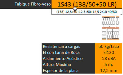 Tabique Fibro-yeso - 1S43 (12,5+50+12,5+50+12,5 2xLR)