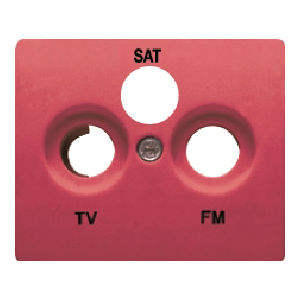 Tapa para tomas R/TV-SAT de 3 salidas, referencia 18341-RR de las series Iris y Mega de BJC. Rojo rubí