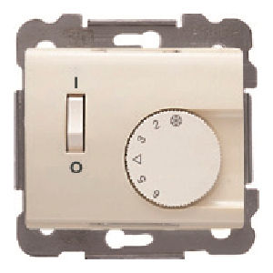 Termostato ambiente para calefacción y ventilación con interruptor beige, serie Iris
