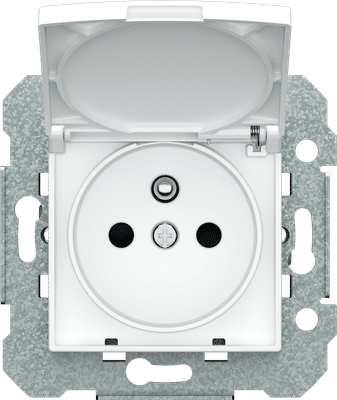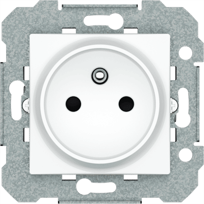 Toma francesa con protección de seguridad, referencia 23572 de BJC. Blanco