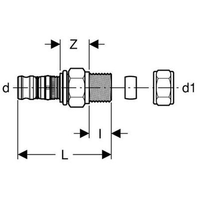 Transición Geberit serie Mepla con unión con anillo bicónico: CW617N, d=16mm, d1=12mm