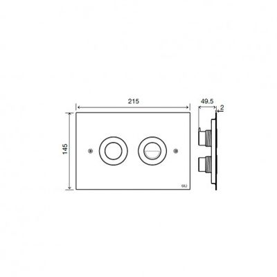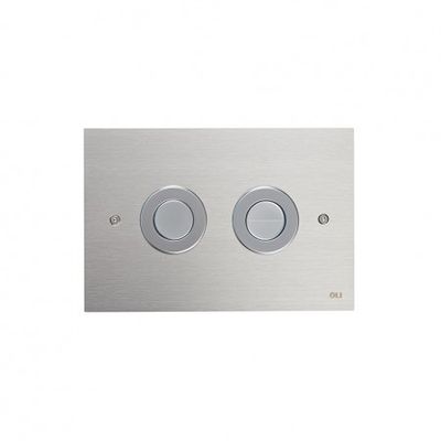 Pulsador para cisterna OLI modelo TREND fabricado en acero inox acabado brillo. Accionamiento neumático. Doble descarga.